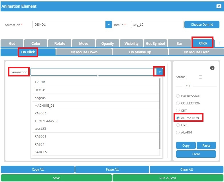 Click Alarm ile animasyonlarınıza alarmlarınızı anlık izleyebilmek veya historisini görebilmek için kullanabilirsiniz.