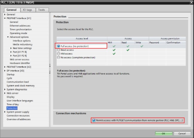 Koruma öğesinde, “Tam erişim” i seçin ve “PUT / GET… ile erişime izin ver…” seçeneğini işaretleyin. şekildeki gibi. Bakınız Resim 5.