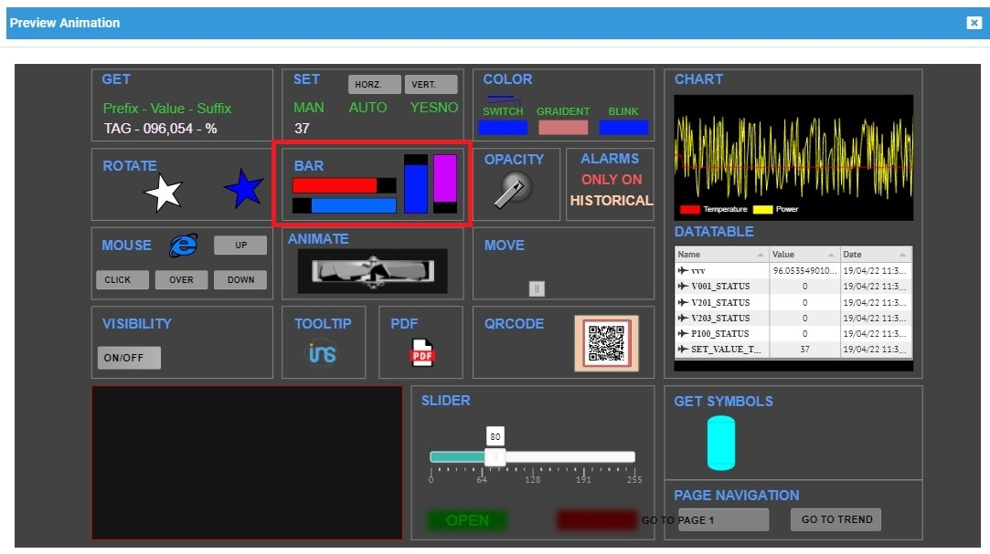 Bar tasarım işlemlerini tamamladığınızda " animation preview " ekranında veya ikonu yardımı ile açılan preview ekranında , " visualization " ekranında ilgili animasyonun ilgili alanında belirlediğiniz kural / şart' lara göre hazırladığınız tasarımın seçtiğiniz başlama noktası üzerinden uzayıp kısalmaya başladığı ekran üzerinden görüntülenebilinecektir.