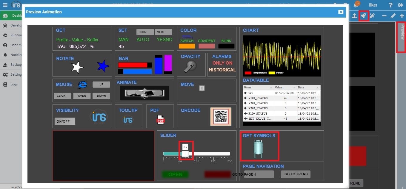 Get Symbol Tasarım işlemlerini tamamladığınızda " animation preview " ekranında veya ikonu yardımı ile açılan preview ekranında , " visualization " ekranında ilgili animasyon seçilerek ilgili alanda "Get Symbols" , belirlediğiniz sembollerin değişken değerine göre geldiği görüntülenebilinecektir.