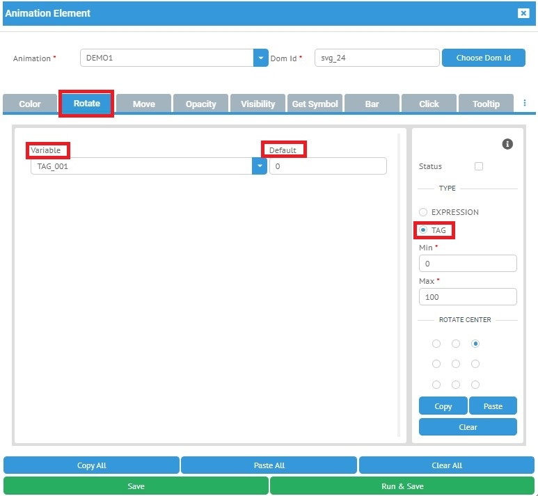 Ratate Tag özelliği ile nesnelerin bir değişkene bağlanarak, değişkenin aldığı değere göre döndürülmesi sağlanmaktadır.