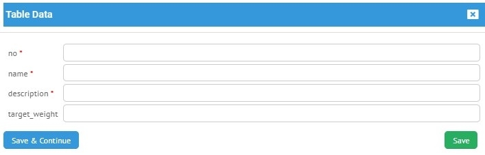 ekleme ikonunu kullanarak dilediğiniz kadar parite ekleyebilirsiniz. İlgili form oluşturduğunuz field'a göre değişmektedir. Örneğin yukarıda oluşturduğumuz form için table data add/ edit formunu inceleyelim.