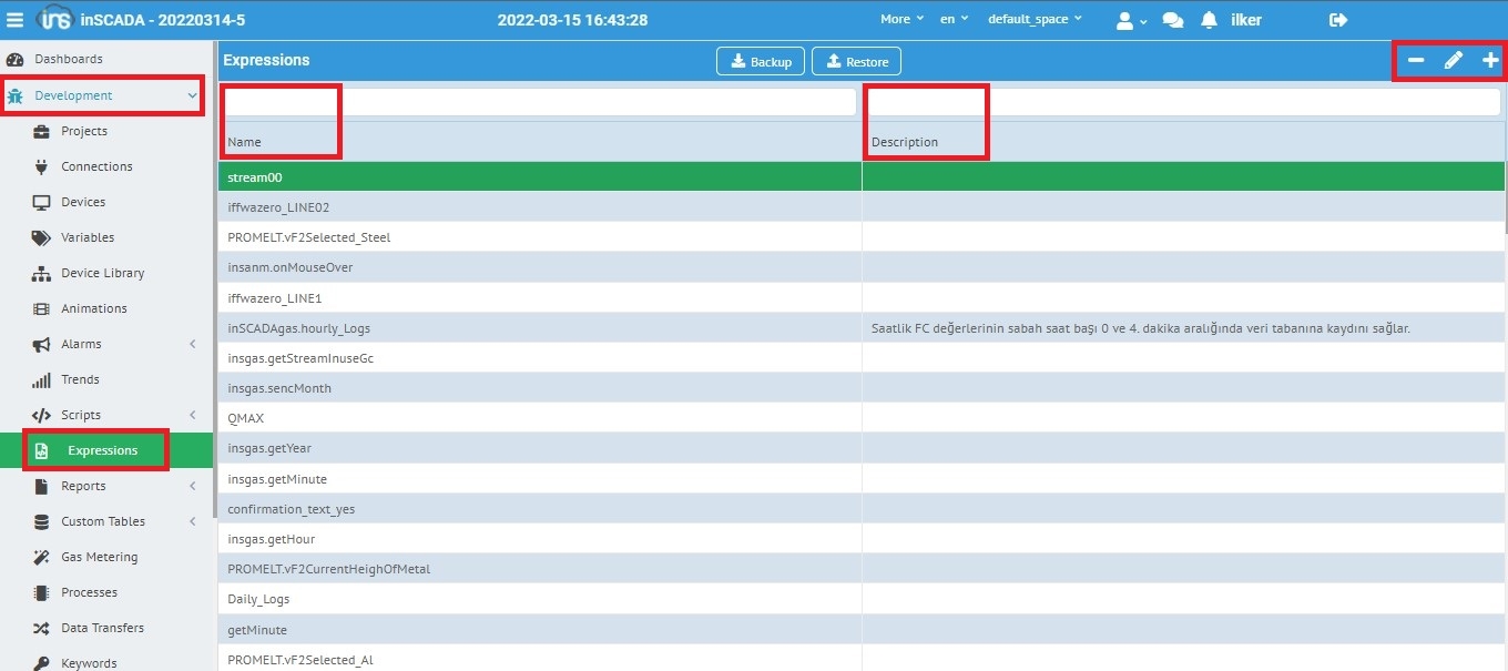 inSCADA içerisinde javascript dilinde expression'lar yazabilirsiniz. Script'ten farklı olarak expression'lar kullanıldıkları ortamdan parametre alabilmektedir. Kullanılan ortamlar;