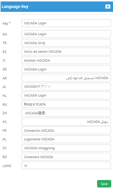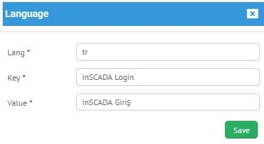 İnscada platformunda yapmak istediğiniz tüm işlemlerde ki veri girişlerinizi farklı dil seçenekleri ile kullanabilmenizi sağlayan menüdür. İnscada sizlere 15 farklı dil seçeneği sunmaktadır.