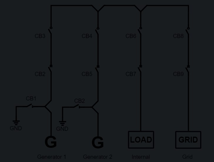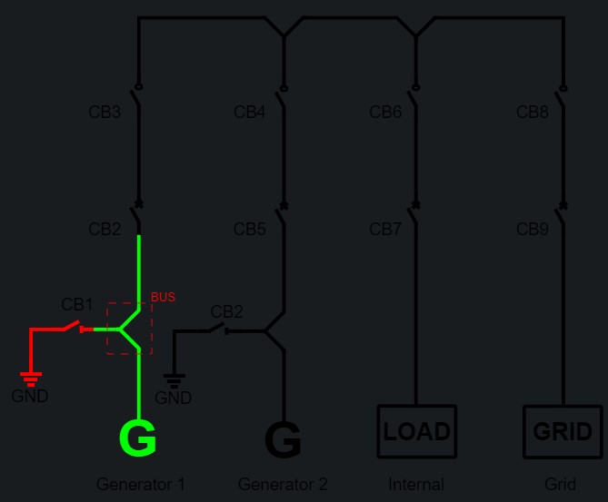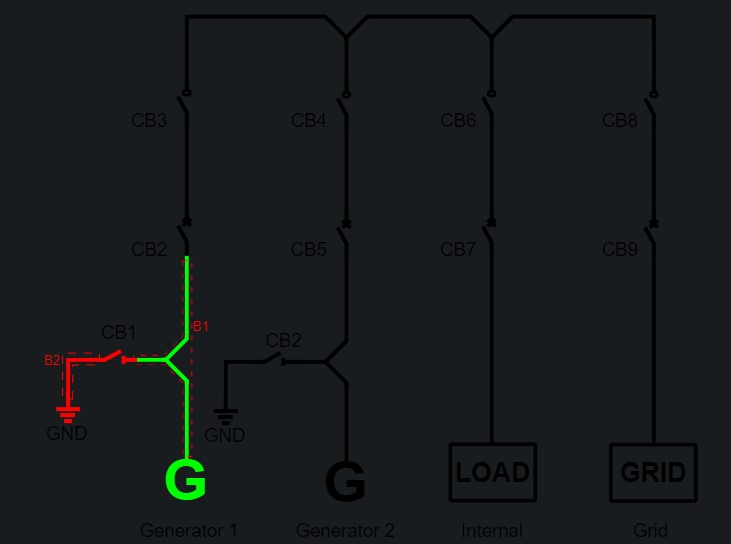 Resim 4'te görüldüğü gibi, yeni yaklaşımımızda sadece, ekipmanlara ve BUS olarak adlandırdığımız ortak bağlantı noktalarına odaklanıyoruz. inSCADA Mathematical Model-Based Proses Control sistemi, örnek verilen bu sistem için, GND, CB1, BUS ve G objelerinin/ekipmanlarının matematiksel fonksiyonlarına ihtiyaç duyar. Resim 3'te tekrar gösterildiği gibi B1 ve B2 nesneleri ile ilgilenmez. Nesneler/Modeller arası bağlantı çizgileri onun için parametre aktarımı için kullanılan bağlantılardır.