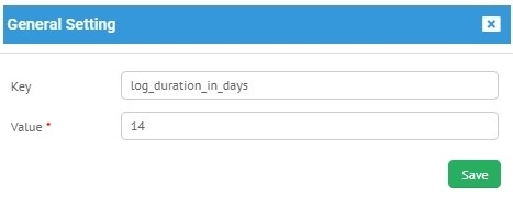 - log duration in days : sistem loglarının kaç gün boyunca tutulacağını belirtmektedir.